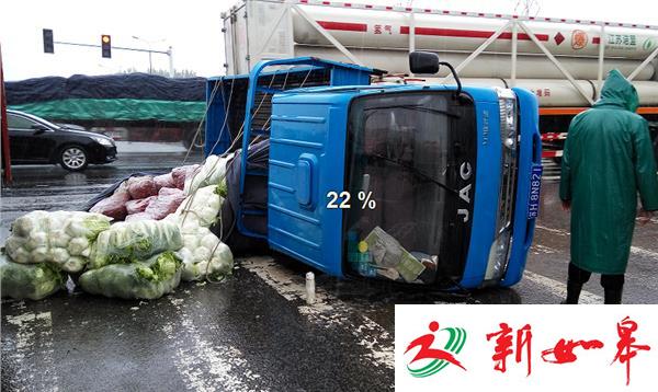 据货车司机介绍,当时事故发生时,一辆电动三轮车突然从车旁开了过去,为了避让三轮车急踩刹车导致货车发生失控侧翻,车上的蔬菜有2000多斤,是准备送到附近一个批发市场,事故没有人员伤亡。