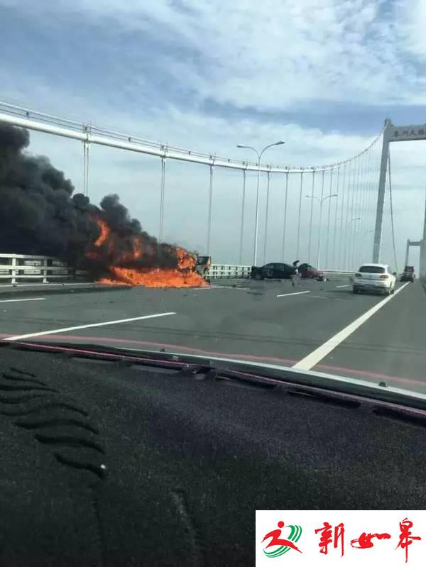 扬子晚报讯 10月30日上午10时许,泰州长江大桥桥面发生三车连环相撞事故,其中一辆小车被撞后燃起熊熊大火。