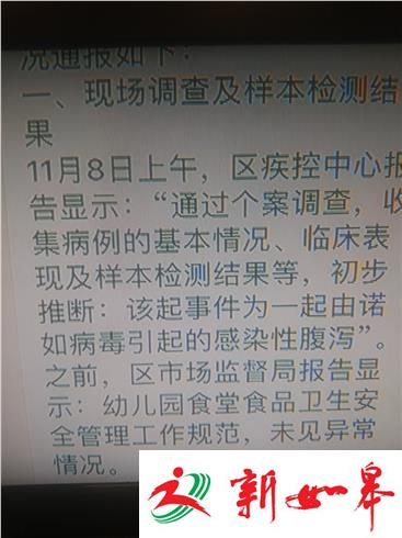 (荔枝全媒体记者何畔)11月4日晚上到5日,南京市雨花台区宏图上水幼儿园大四班陆续有孩子发生呕吐、肚子疼、头晕、发热等现象,经初步统计有21人。事件发生后,雨花台区教育局、卫生局、食药监等部门已经介入调查,区疾控中心已经对园内的餐具、食品等进行了取样。今天(11月8日)下午,取样结果正式出炉。