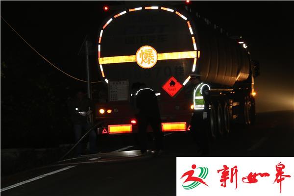 约23时,安监局危化品处置库专家组赶到现场进行指导决定实施驳载,既有利于降低货主经济损失,也不会对周围环境造成不利影响。在警车开道和收尾下,将危化品泄露的车辆移至星甸后圩静脉产业园一处小山坡上,在消防队员的严密监控下,利用自然坡度实施驳载。