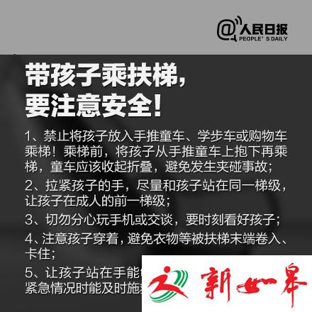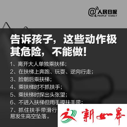 ①不要倚靠扶梯侧面;②留意衣物或手拎物品,谨防被挂住;③不要将孩子放入推车、购物车中乘梯;③扶梯停止运行期间,不要当楼梯使用;④一旦遇险,可按下电梯两端的紧急停止按钮……手扶电梯“吃人”惨剧频发,安全乘坐守则,每个人都必须了解!转!