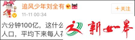 双十一,每个人都成为了站在马云背后的女人。成交额在52秒内就突破10亿,6分58秒突破了100亿,39分钟内突破了310亿………