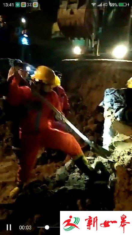 15时40分,救援现场挖出一个直径约100米的大坑,动土约20多万方,挖掘机械已经增加到80多台。