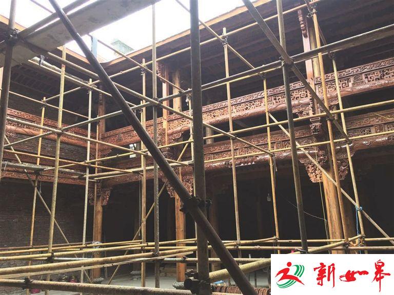 记者进入“别墅”内部,并没有看到有人在施工,内部还有一个天井。在房子内部,记者遇到一名男子,他说,整座房子外部是砖混结构,内部的大梁和柱子都是一座老房子的,“房主花了好多钱,从浙江奉化买了,拆掉之后运过来的。”