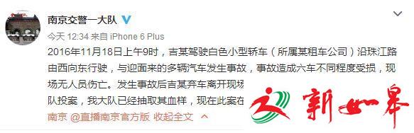 今天中午12点多钟,南京交警一大队的官方微博对这起事故进行了通报。宝马轿车司机吉某已于12点来到大队投案,民警已经对其抽取血液进行检测,目前此案还在进一步调查中。