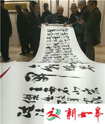 今天(18日)上午,南通举办“翰墨南通,诗韵江海”2016年九老书法展,沈元成、潘宗和等9位老书法家的45幅作品展出,9位老人同时现场挥毫庆祝省第13次党代会胜利召开。本次展览是南通历史上首次老一辈中国书法家协会会员的专展,吸引了不少市民和书法爱好者前去观展。