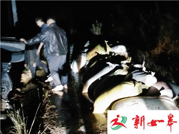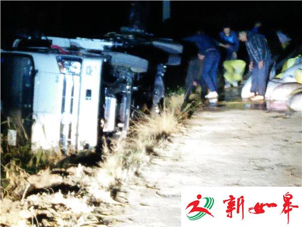 昨天(11月17日)晚上6点半左右,淮安涟水徐集上庄近内,发生一起交通事故,一辆刚买的新货车去朋友家运输水稻,在回家的过程中,由于路窄避让行人,连人带车及车上2000多斤水稻全部坠入河中,侥幸的是人无大碍。