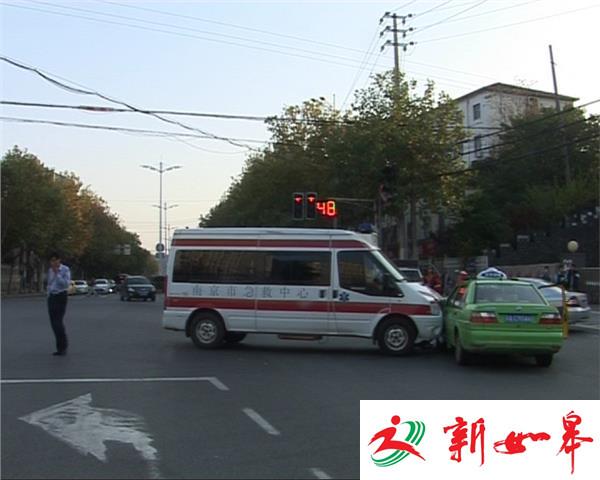 昨天(11月15日)下午3点多钟,在南京栖霞区尧新大道与尧佳路路口,一辆120救护车与一辆出租车相撞,出租车司机受轻伤。