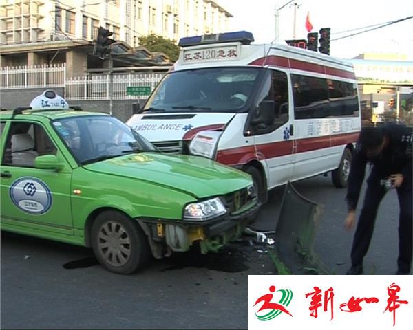 救护车过路口 出租车一头撞上
