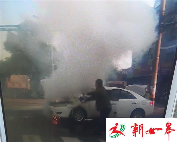 据镇上城管队员介绍:当时他们在镇上执勤,看到火情后立即跑到镇政府拿灭火器赶来灭火,还有周围群众也赶来提水灭火,据车主介绍,当时他开车送孩子回头,行驶到这里时发现车头冒烟了,就赶紧将车辆停下立即掀开引擎盖,用自带小灭火气喷,但是不起效果,火势很快变大了,好心群众及城管队员拿来灭火起来喷,这辆车子已经买了三年,他初步分析事故是由于车辆线路问题发生自燃,具体有待专业部门检测调查。