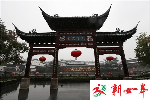 从11月22日晚至23日晨,江苏南京落下入冬以来第一场雪,整座城市被期盼已久的冬雪覆盖,南京雪景让不少市民感叹美哉!今天(23日),南京夫子庙银装素裹,分外妖娆。在南京阅江楼风景区,更是银装素裹,引得踏雪赏景的游客纷沓而来,欣赏美景,拍照留念。