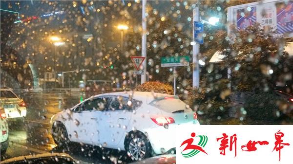荔枝新闻网友今晚在宿迁市看到,大雪从傍晚6时下起,随着夜幕的降临雪越下越大,许多街道、车辆已被大雪覆盖,到网友晚8时发稿时整座宿迁城已白茫茫一片。
