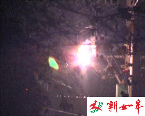 据罗师傅讲,他家就住在着火变压器旁边,当时听到有爆炸声,出来就看到冒火了,赶快报了警,以前也没出现过这种情况,据他邻居周师傅讲,就看到家中电视和电灯一闪一闪的,好像电压不稳,外面还发出劈哩叭啦的鞭炮声音,也没有停电,出来才看到这种情况,赶紧关了家中电源,不久后供电公司王师傅和消防都先后赶了过来,检查发现是三个熔丝,其中一个烧坏掉了,随后王师傅就联系了值班室,让他们赶快派人过来连夜抢修,他说这个变压器电压是十千伏的,目前原因他也说不清楚!可能是和下雨潮湿漏电有关系吧,具体原因他们过来抢修再进一步检查处理!