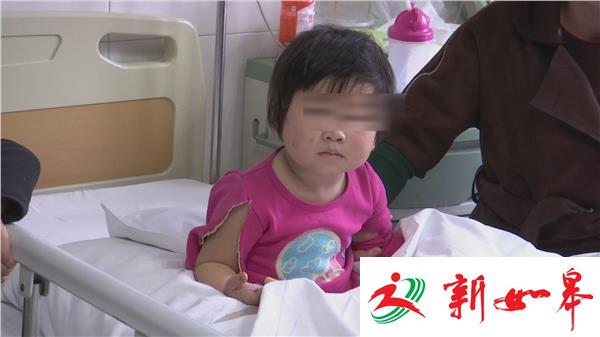 11月21日上午,记者在手外科医院的病房内,见到了受伤的琪琪。这名年仅三岁的小女孩脸色苍白,右手还包着一层厚厚的纱布。而在琪琪的身边,妈妈吴女士在旁陪护着。琪琪的妈妈 吴女士:“无名指上面的骨头断掉了。”