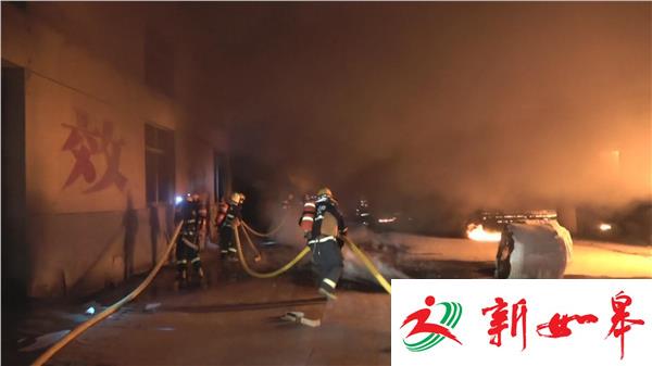 新沂消防中队接到报警后,立即出动4辆消防车20名官兵赶赴现场扑救。消防官兵到达塑料制品厂后,看到整个厂区内火光冲天,一间仓库正在猛烈地燃烧,因为里面存放了大量原材料以及加工好的一次性餐盒,火势蔓延的非常迅速。
