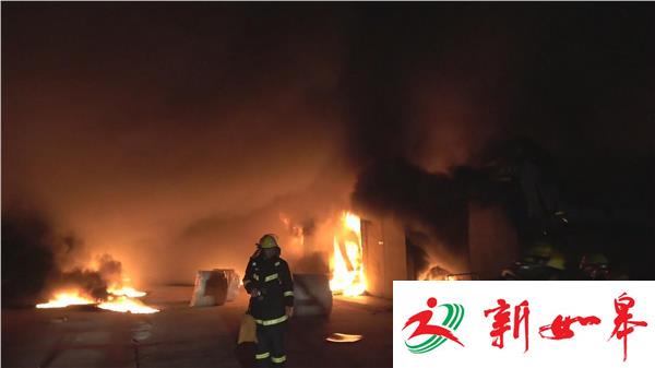 11月12号晚上9点,在徐州新沂市北沟镇仲庄村,一家塑料制品厂内火光冲天,仓库被大火烧塌,邻近的生产车间也岌岌可危。