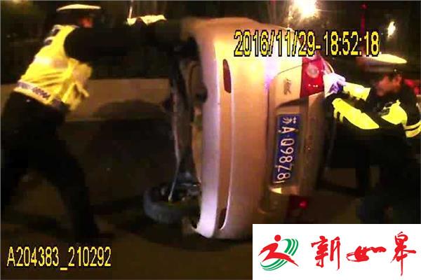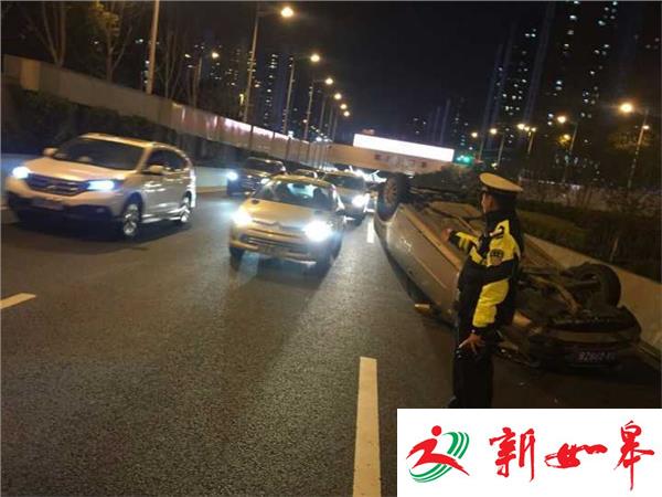 11月29日交通晚高峰期间,南京江东北路管子桥隧道由南向北出口处一辆轿车翻车,五大队五中队民警接警后迅速赶到现场,民警们边疏导交通,边和清障人员一起研究如何将车快速翻过来,最终在大家一起合力将侧翻的车给翻了过来,迅速恢复了交通。