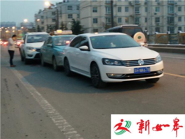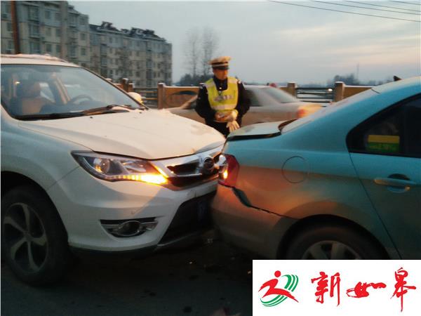 淮铺路西门大桥桥上三车追尾交警提醒减速慢行