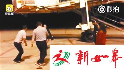 乘客下飞机后,在停机坪上踢毽(视频截图)