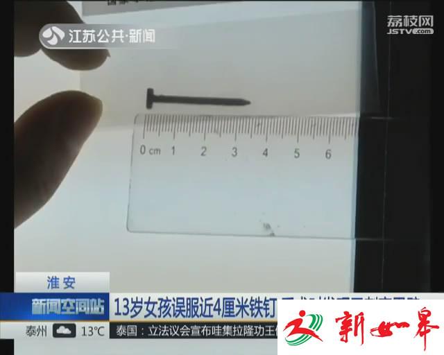 13岁女孩误服近4厘米铁钉 手术时发现已刺穿胃壁