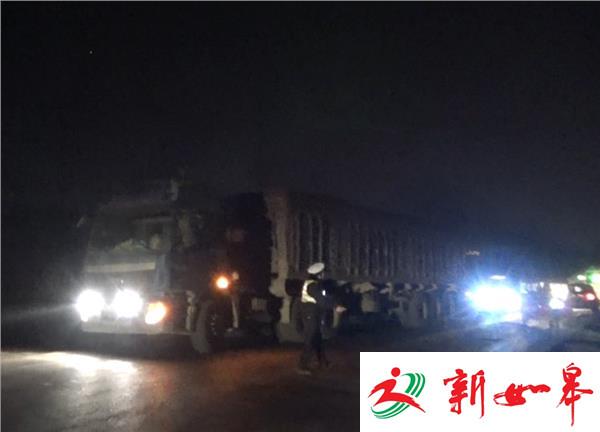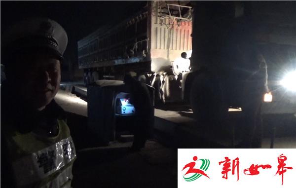 当晚9点,徐州沛县交警在敬安路段执勤时,发现眼前的两辆大货车正龟速行驶,很显然有超载嫌疑,交警随即将这两辆涉嫌超载的大货车截停,并将车辆带至停车场进行过磅。