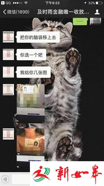 催债时,“裸贷者”的身份证号、裸露照片会被散布至其熟人圈,“甚至父母都会收到催债短信,或者是孩子的裸照”。