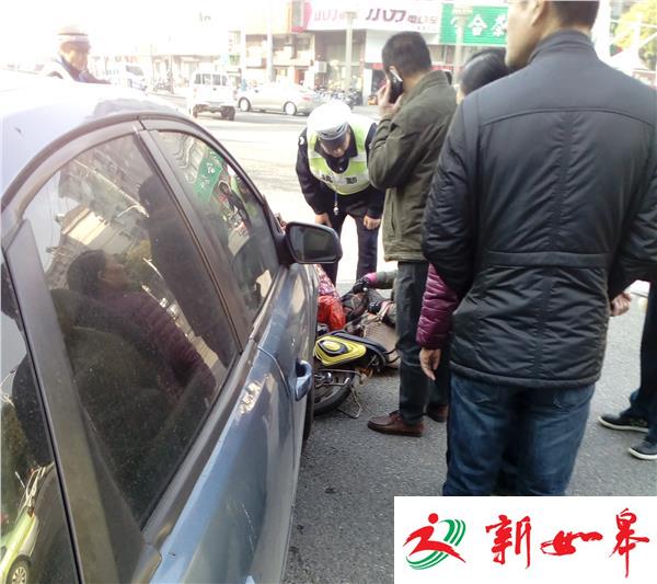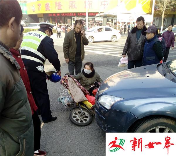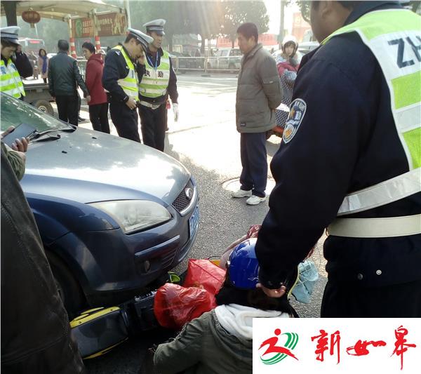 今天(12月2日)上午九点左右,在南京市六合区泰山路与白果路交叉路口,一辆福特轿车撞倒一骑电瓶车女子,造成骑车人腿部严重受伤。事故发生时恰巧交警就在旁边,而且路边交警宣传车正在进行交通事故案例宣传。