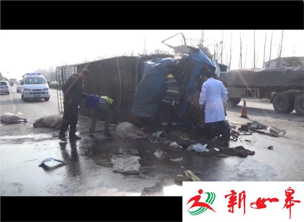 昨天(12月1号)下午一点半左右,徐州市睢宁县双沟镇双塔路发生一起交通事故。一辆拉猪的小货车追尾一辆半挂车,事故造成小货车上五人受伤,数十头猪死亡。