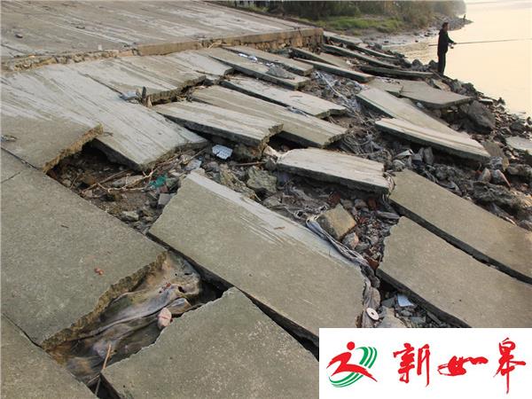 万景园旁江堤出现滑坡 市民此处钓鱼危险(视频)