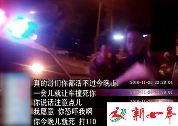 当晚交警执法记录仪拍摄的视频显示:这名女子在打电话找人免责不成后,便一直在大声辱骂交警,并威胁称:“哥们你都活不过今晚上,一会就让车撞死你。”
