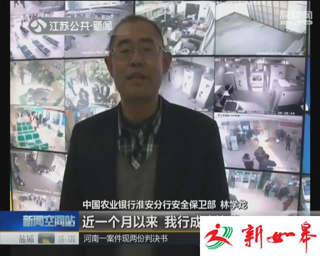 中国农业银行淮安淮海广场支行保安张运虹介绍,打开门听见叫他插第二张卡,后来我说不能放不能放,这肯定是骗子,于是我就把他带到填单台那边。