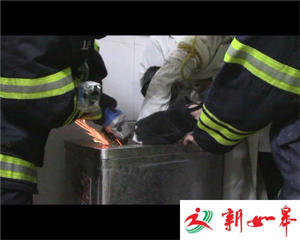 中队消防官兵到达现场后,发现该学校食堂一名35岁左右的女员工右手被卷入绞肉机内,女员工情绪比较激动,十分痛苦。