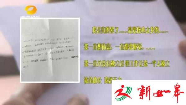 据湖南经视《经视焦点》微信公众号12月8日消息,今年26岁的年轻女子小程在长沙一家公司上班,从事财务工作,按理说属于很多人羡慕的白领阶层,但12月5号下班后,小程却一直没有回家,家人找了一晚上,第二天才发现,小程竟然在公司大楼的楼梯间上吊身亡!还留下一封遗书说“自己真的累了,一直想休息”。