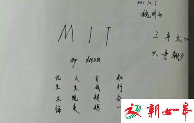 魏则西在笔记本上写下大大的“MIT”,以此作为奋斗的动力。图/韩逸