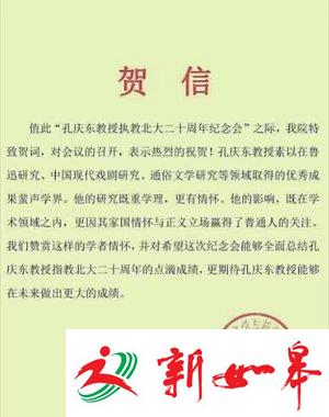 今日上午起,多份贺信截图在网络流传。新京报记者注意到,这些贺信内容多为祝贺孔庆东“执教北大20周年”,落款单位各不相同,包括山东大学文学与新闻传播学院、某知名媒体等。