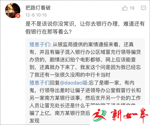 这是他自己的解释:从银监局提供的案情通报来看,还真有(假银行),并且有骗子混入银行办公区域冒充行领导骗贷办贷的,剧情迷幻拍个电影都够,网上应该能查到,还真就办下来了,我发这个问是因为我已经忘了我还有一张很久没用的中行卡……balabala……