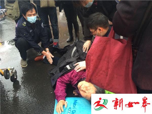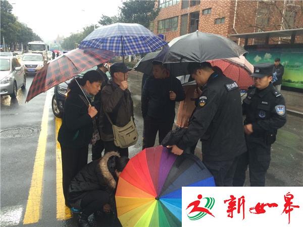 13日上午8:30左右,南京北安门街发生一起交通事故,一位老人过斑马线时,被一辆白色轿车撞倒,由于外面下着雨,执行任务的特警路过此处和路人撑起温暖的雨伞,随后120将老人送往军区总医院救治。