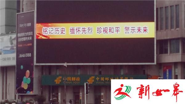上午10点,国家公祭仪式正式开始,雄壮的《中华人民共和国国歌》从大屏幕里传出,响彻整个新街口上空。南京新街口十字路口的交通信号灯,从原本的红黄绿交替,同时全部变红,道路上行驶的所有车辆纷纷停下,行人也站立在原地。大家不约而同地看向一面播放着南京大屠杀死难者国家公祭仪式直播画面的户外大屏。