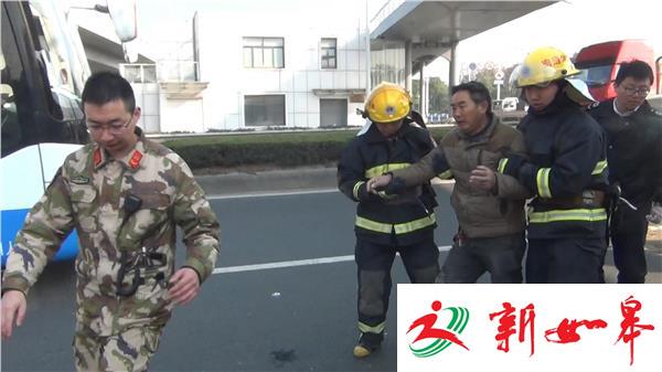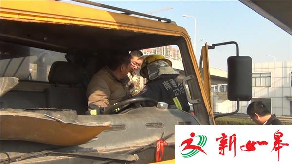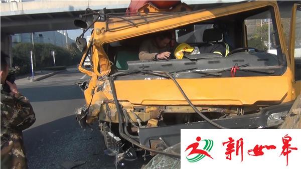 12月15日09分44时,南通市崇川区长江中路高架姚港油库附近发生一起交通事故,一辆吊车追尾一辆油罐车,吊车司机被卡在驾驶室内,消防部门接到报警后立即调集辖区消防队赶赴现场进行救援。