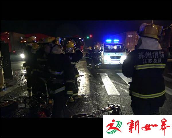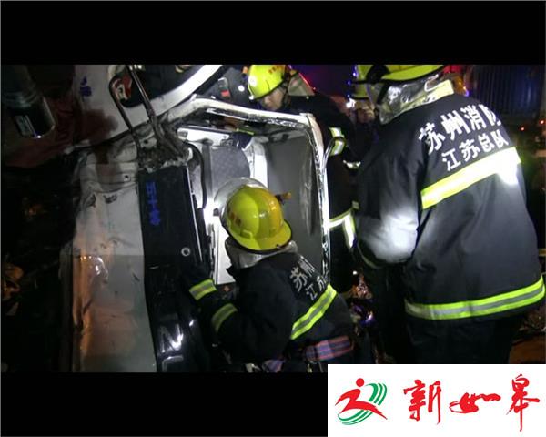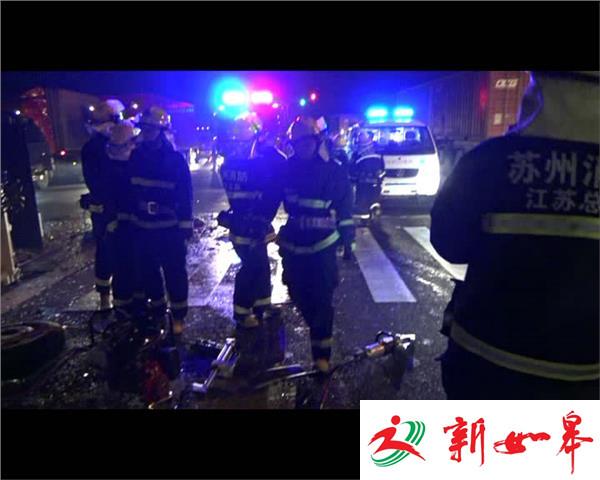 12月15日凌晨5时15分,苏州市消防支队常熟大队接到110指挥中心报警称,位于常熟沙家浜镇锡太公路与张泾路交叉口发生一起交通事故,有3人被困,急需救助。接到报警后,大队迅速调派东南中队3辆消防17名消防官兵赶赴现场处置。