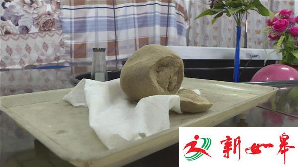 刚见到记者,张师傅就欣喜地展示起了刚刚从羊肚里取出的宝贝。只见这个球状物体泛着土黄色,足足有一个成年人拳头那么大,表面看上去毛绒绒的,摸上去软软的,湿湿的。从破损处,还能看到内部的絮状物体。张师傅说,这个球状物是前几天杀羊的时候,在羊肚里发现的。