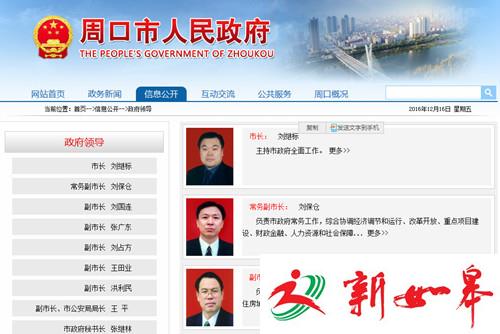 “北京时间”登录河南省周口市人民政府官网发现,“政府领导”一栏中已无刘政的姓名。此前由刘政分管的周口市农业局、市水利局、市粮食局、市林业局等单位,已改为周口市副市长洪利民分管。