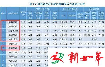 12月16日,《2016县域经济与县域发展报告》在京发布,在第十六届全国县域经济与县域基本竞争力榜单中,江阴再次蝉联第一,实现“十四连冠”。此次昆山市和江阴并列榜首,张家港市、常熟市、太仓市、福建晋江市等9个县市分列榜单第二至第十名,宜兴名列第六。
