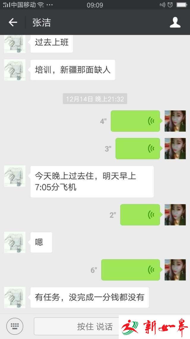 女孩同学郑婷说,她并不知道张洁受聘公司的具体名称和位置。并且在应聘成功后,张洁连一天正式的班都没有上过,便被去派出差,“张洁解释说是新疆缺人,所以要急着去。”郑婷回忆,16日凌晨3点多,张洁回到家里,第二天一亮便收拾行李,准备去乌鲁木齐出差,“说是去开拓新市场”。 (来自:封面新闻)