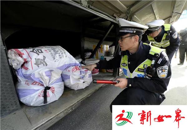 今天(1月13日)是春运首日,盐城市交警支队的民警深入汽车客运站、新兴春运执法检查服务站,看有无携带危禁品、检查客运车辆的车容车貌和“春运检验”标贴、向乘客宣传安全常识等。