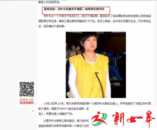 张冠李戴 苏叶女判无期 名下贴上吴英照片