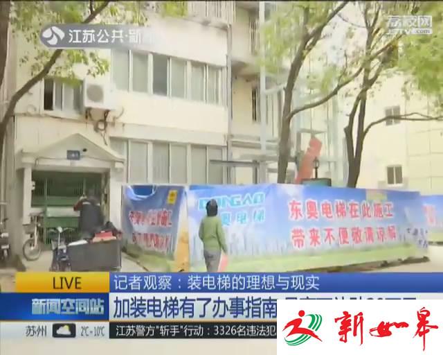 在南京台城花园小区,工人们正在给住宅楼加装电梯。今年72岁的蔡渝生老人是2栋6层的一位住户,他告诉我们,新建一部电梯需要花费50万左右的费用,按照业主费用分摊协议,体现差别化,他所在的6楼大概需要分摊5万元左右。