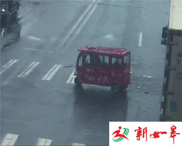 昨天(5号)下午两点多,淮安市237省道淮施路发生惊险一幕,一辆电动三轮车在通过一处十字路口时闯红灯通行,结果与一辆正常行驶的厢式货车相撞,电动三轮车车身被撞严重变形。