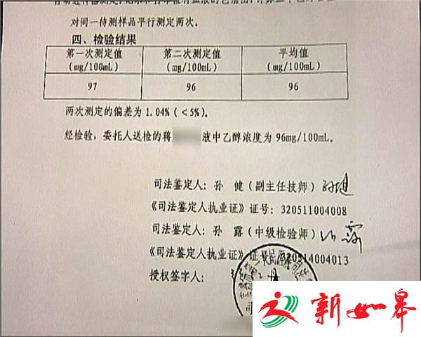 经初步检测,蒋某的血液酒精数值超过了醉驾标准。随后,民警将蒋某带到医院,作进一步血液酒精检测。检测结果为百毫升血液含酒精96毫克,达到了醉驾标准。