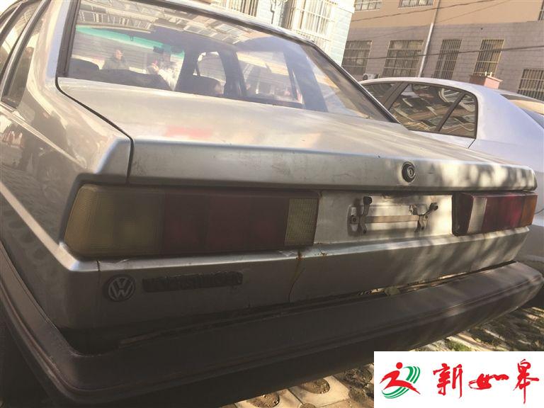 1月13日上午,记者来到大丰区金宇景苑小区,从小区南门驶入,就感觉到道路空间狭小,车辆乱停乱放的现象非常严重,很多没有划车位的空当处,也被车辆塞满。随后,记者在业主秦先生的带领下来到15号楼前的停车坪,看到十几个停车位上,竟然停放了6辆“僵尸车”。有无牌的桑塔纳,有依旧挂着车牌的小皮卡,还有多辆三淞牌四轮电动汽车。记者近距离一看,这些车大多车轮胎全部瘪了下去,车辆周围杂草丛生,玻璃和门窗都有不同程度的破损,有些车的保险标志还停留在2015年。